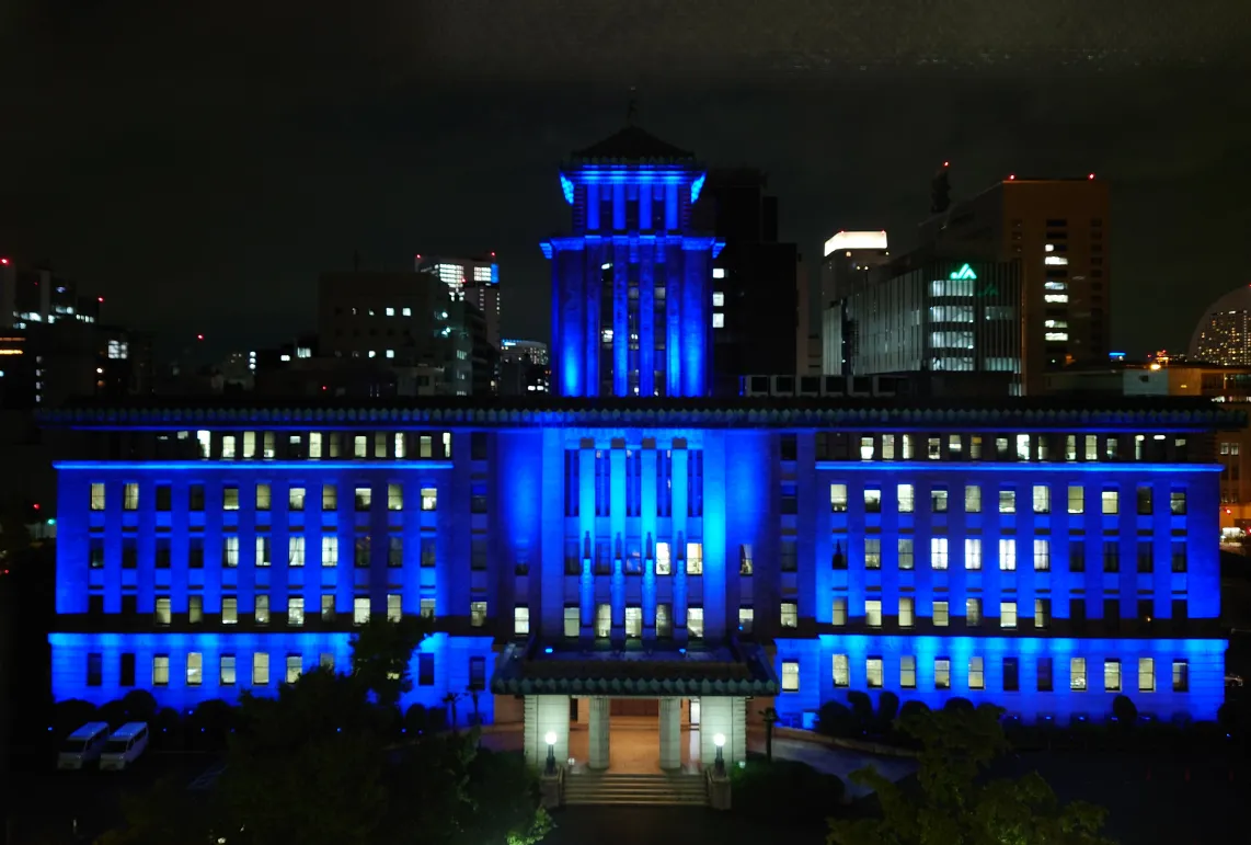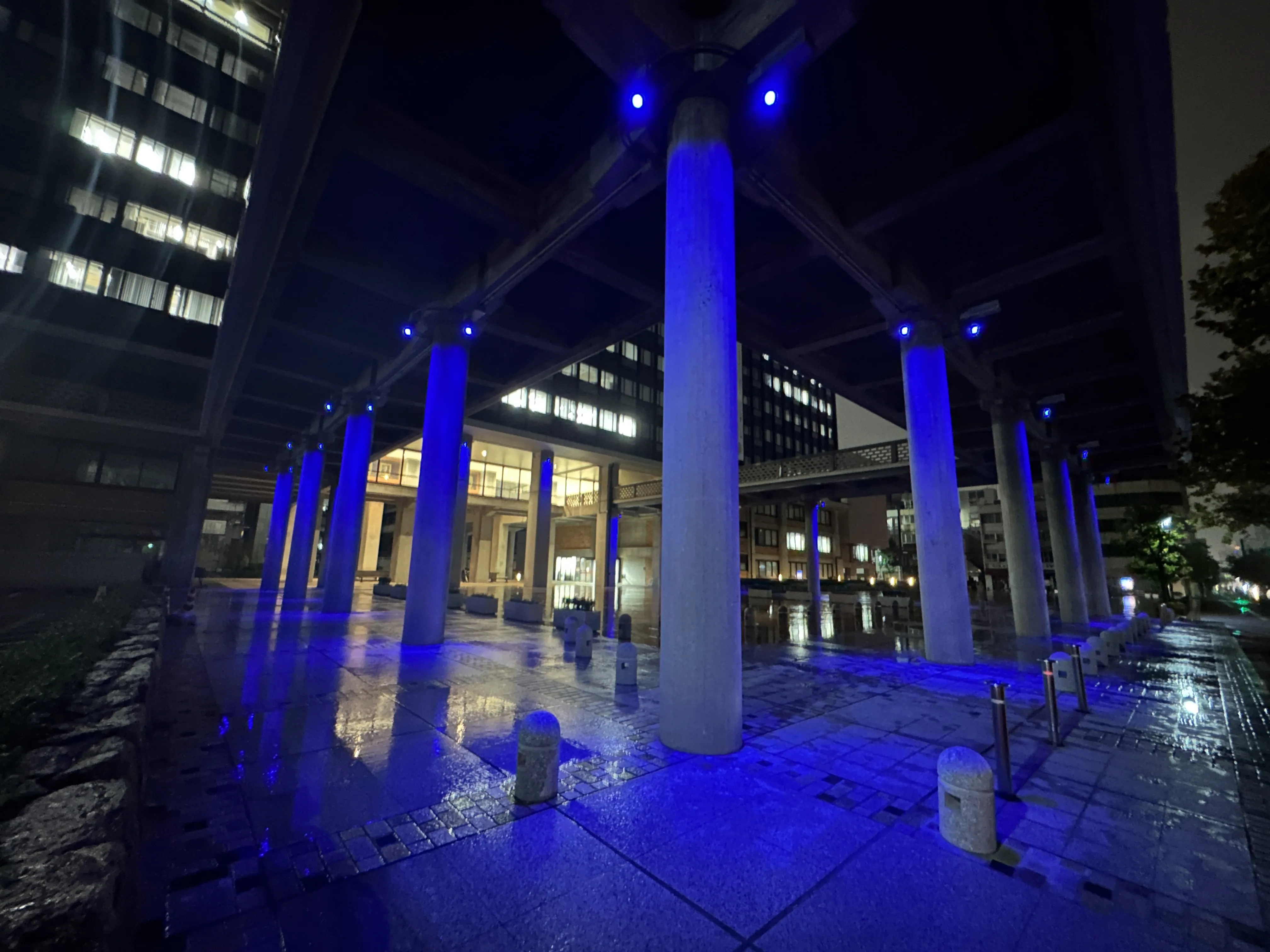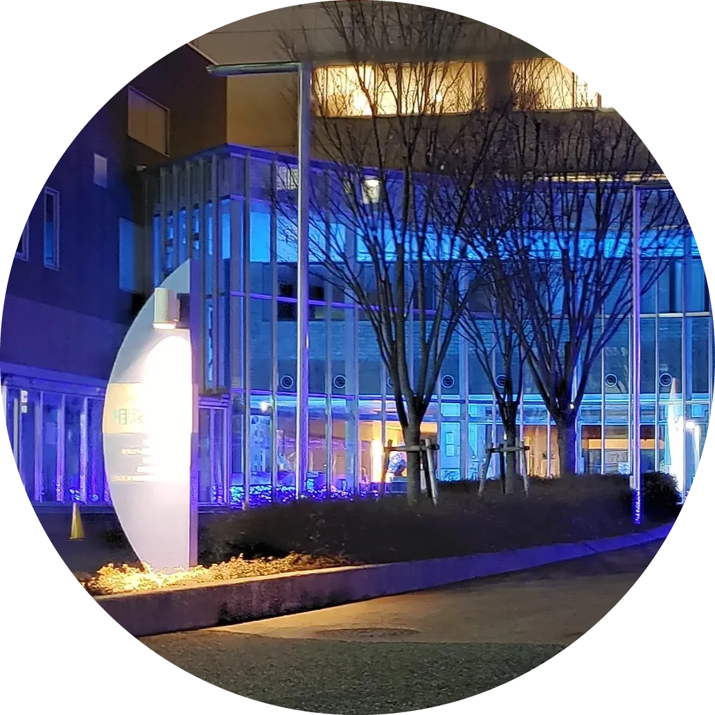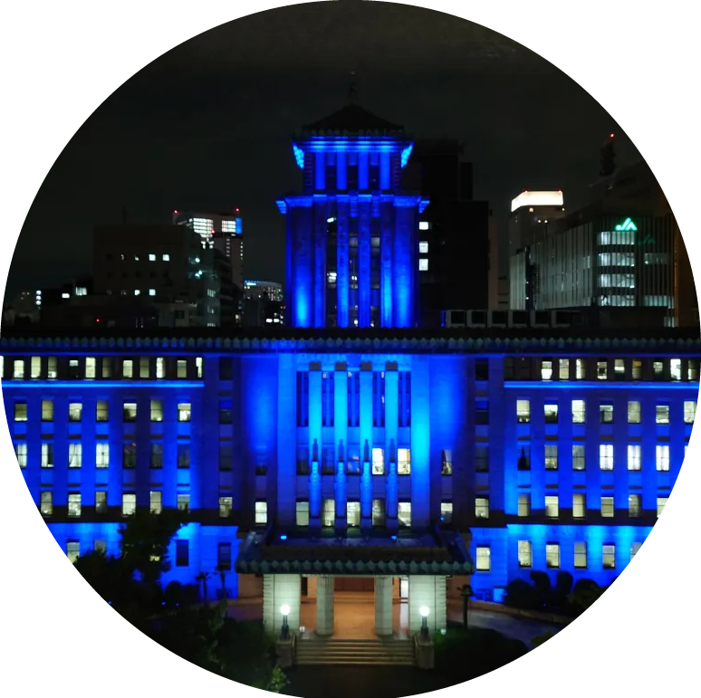 大腸がんとともに生きる方々への応援メッセージと大腸がん検診の大切さを発信することを目的に、全国の自治体や民間団体などと連携して、各地の施設を啓発カラーの「ブルー」に彩るライトアップを実施しています。