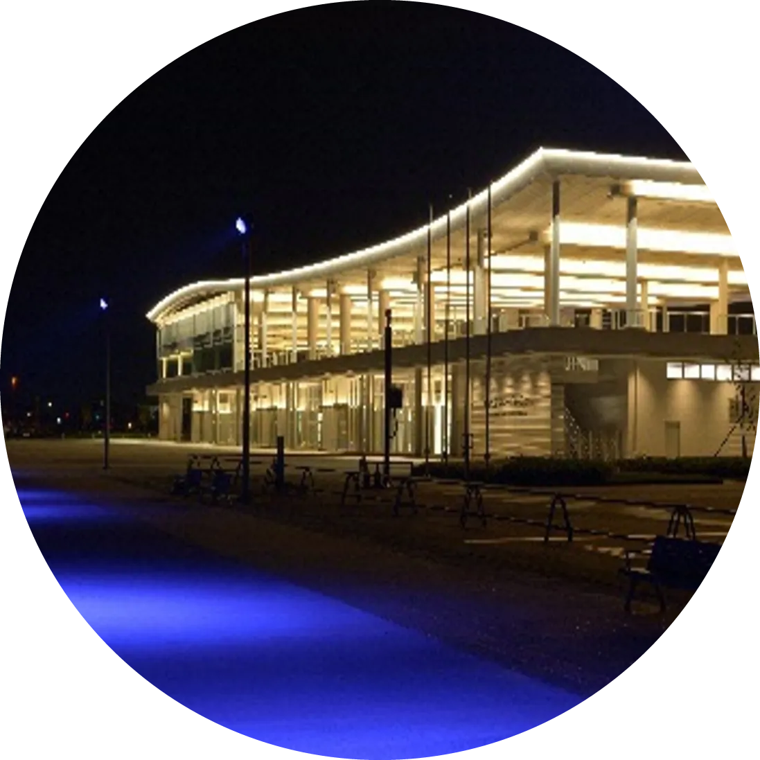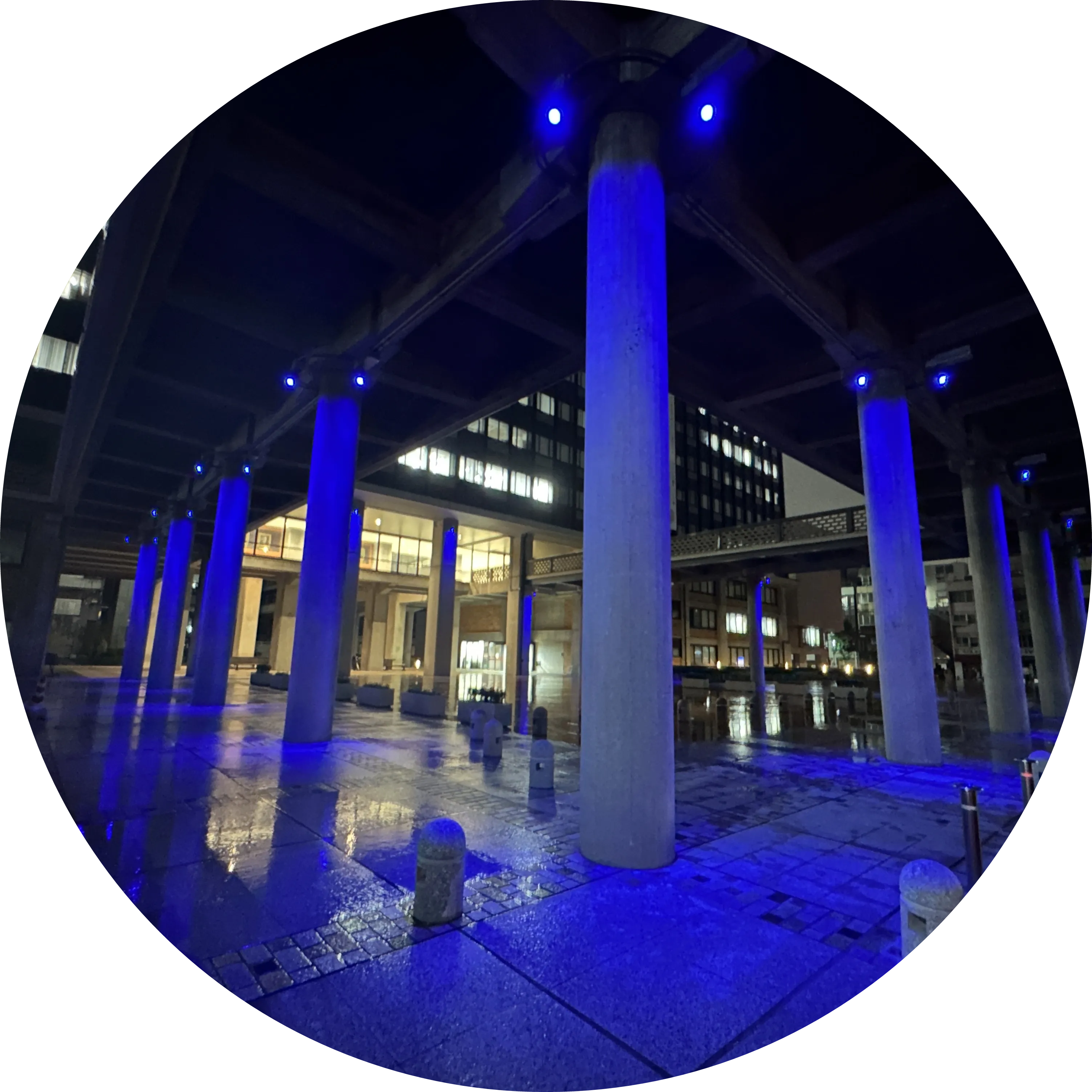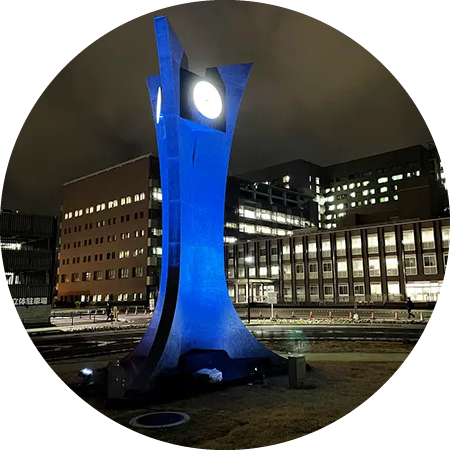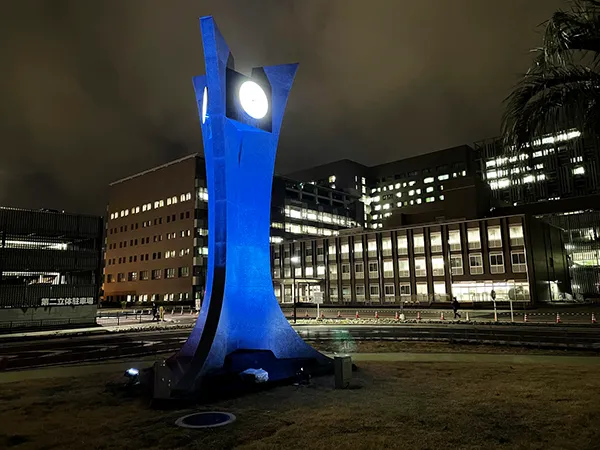 大腸がんとともに生きる方々への応援メッセージと大腸がん検診の大切さを発信することを目的に、全国の自治体や民間団体などと連携して、各地の施設を啓発カラーの「ブルー」に彩るライトアップを実施しています。