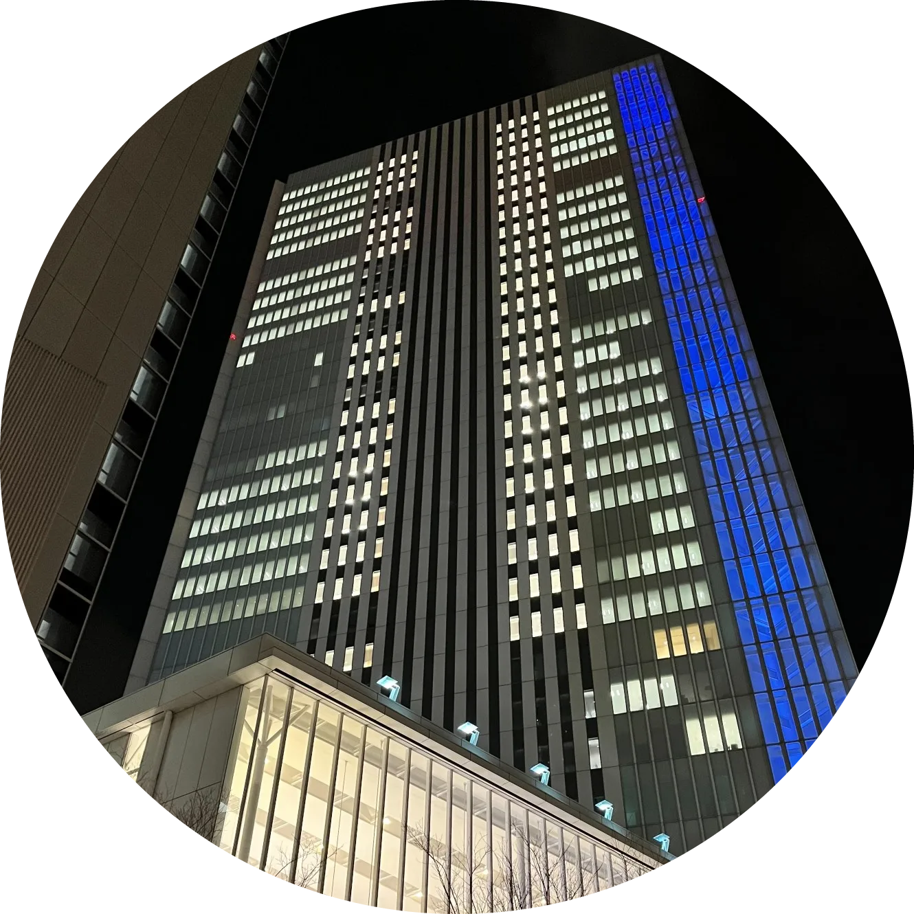 日本対がん協会では、大腸がん患者さんとご家族を支える情報を発信するとともに、全国の自治体や民間団体などと連携したライトアップを実施しています。大腸がんとともに生きる方々への応援メッセージと検診の大切さを伝えています。