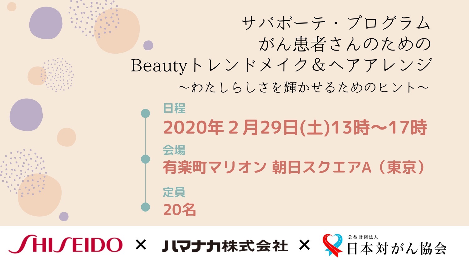 【第2回 サバボーテ・プログラム がん患者さんのためのBeautyトレンドメイク&へアアレンジ】~わたしらしさを輝かせるためのヒント~