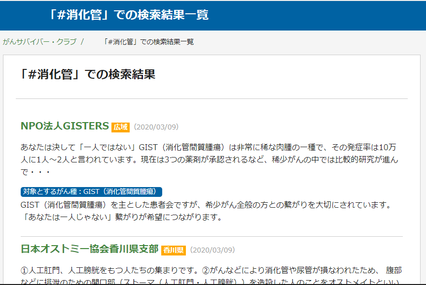 サバイバーネットに登録されている患者会・支援団体情報約30件が表示されます。