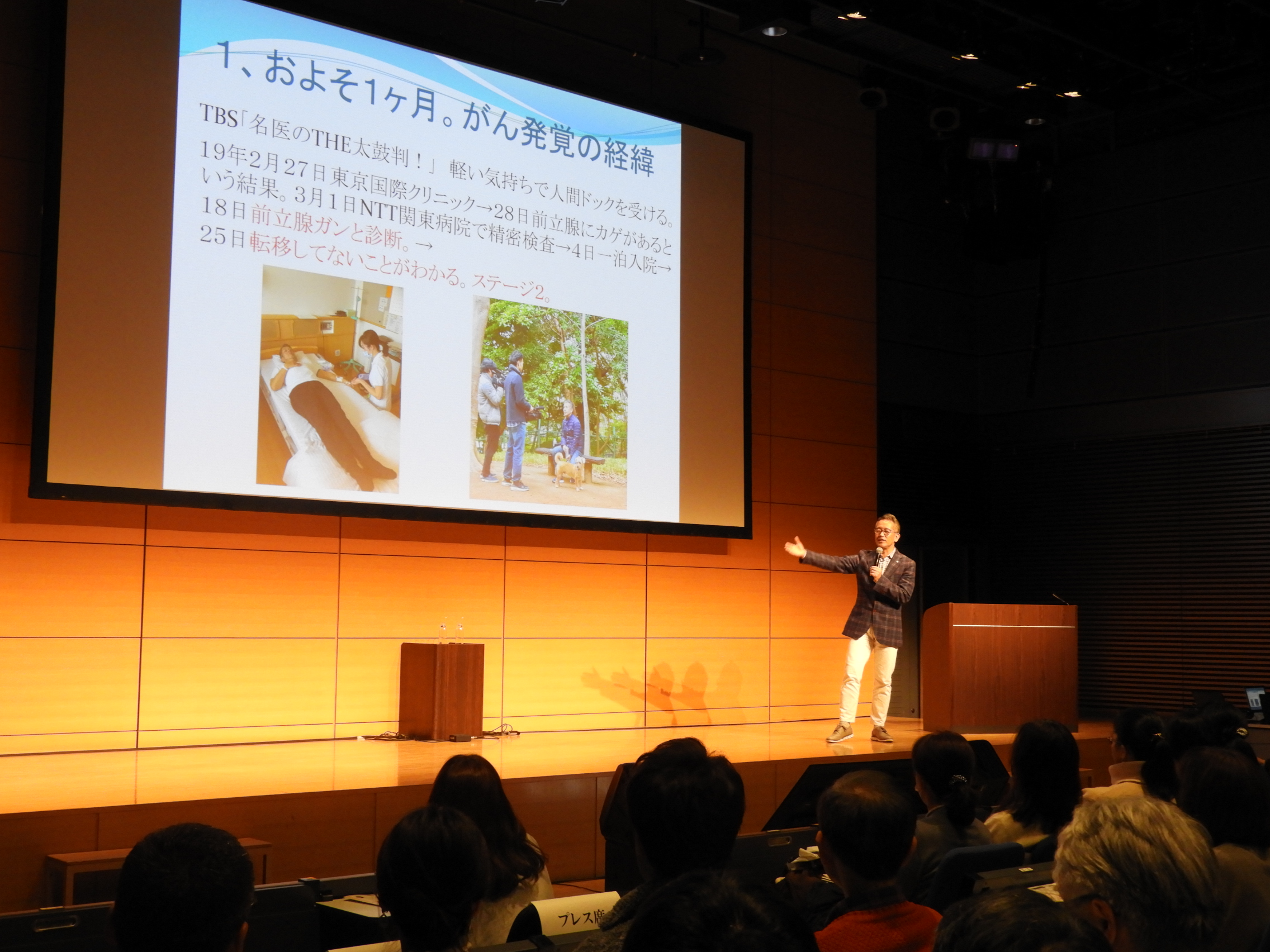 そして3月18日、結果を知らされます。「がんじゃない」と言ってほしい、と思ったときに、「cancerです」と。英語で来たか、と。 一瞬戸惑いがありました。前立腺がんで、ステージは2ではないか、と説明されました。