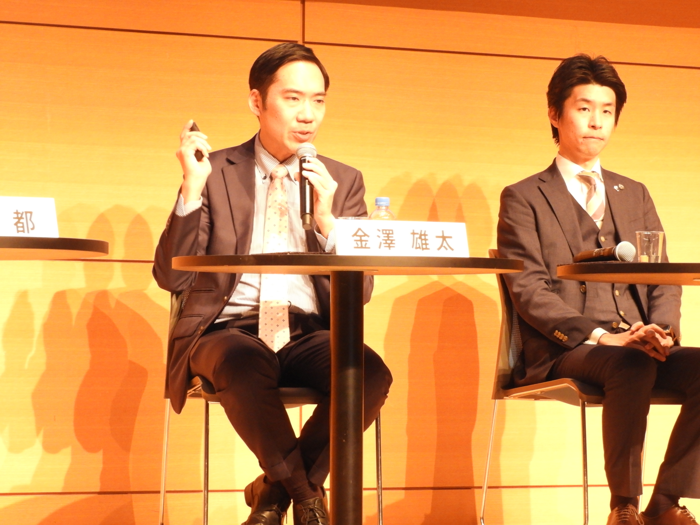 登壇者たち。右からジェイエイシーリクルートメントの春野直之さん、金澤雄太さん、コメンテーターの高橋都さん、コーディネーターの上野創さん。