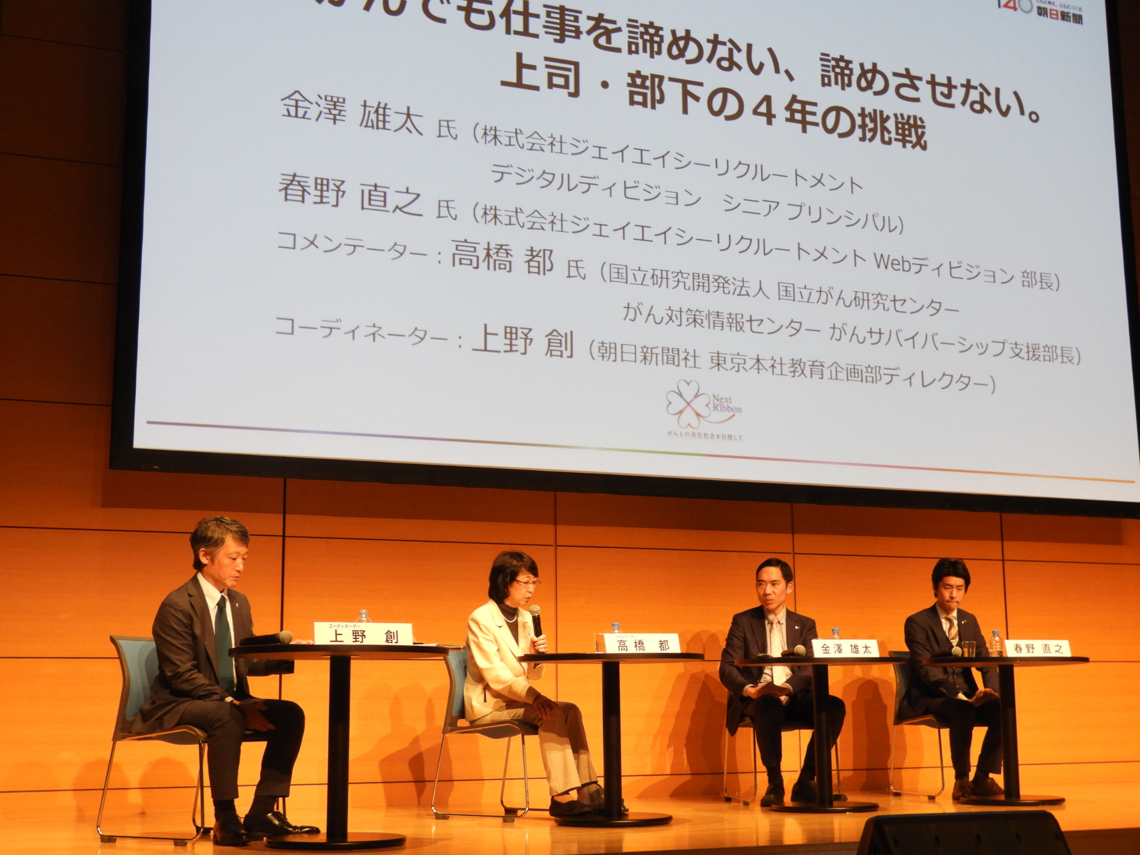 治療と仕事の両立は、言葉にすれば美しいが、困難も立ちはだかる。仕事への影響がゼロというケースは少ないからだ。その際に欠かせないのが、会社や周囲の理解である。  第1部の最初のセッションは、基調トーク「がんでも仕事を諦めない、諦めさせない。上司・部下の4年の挑戦」。