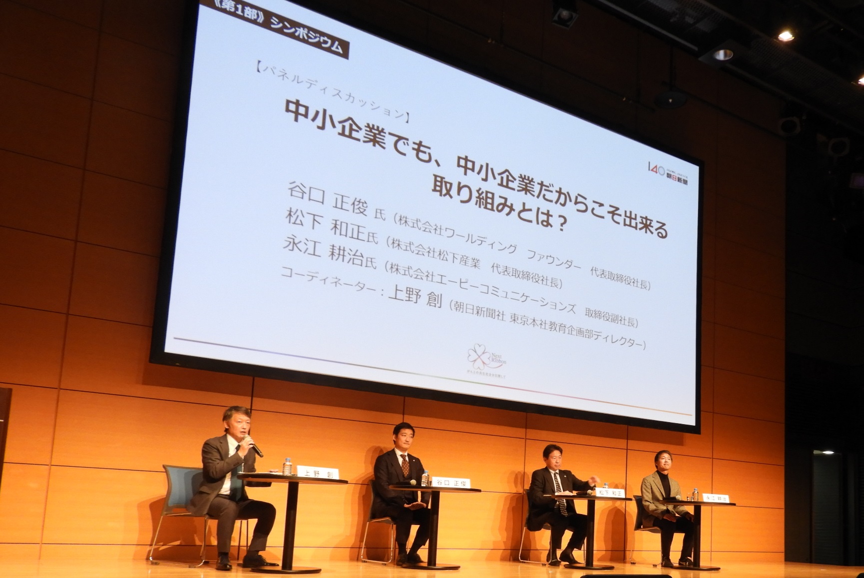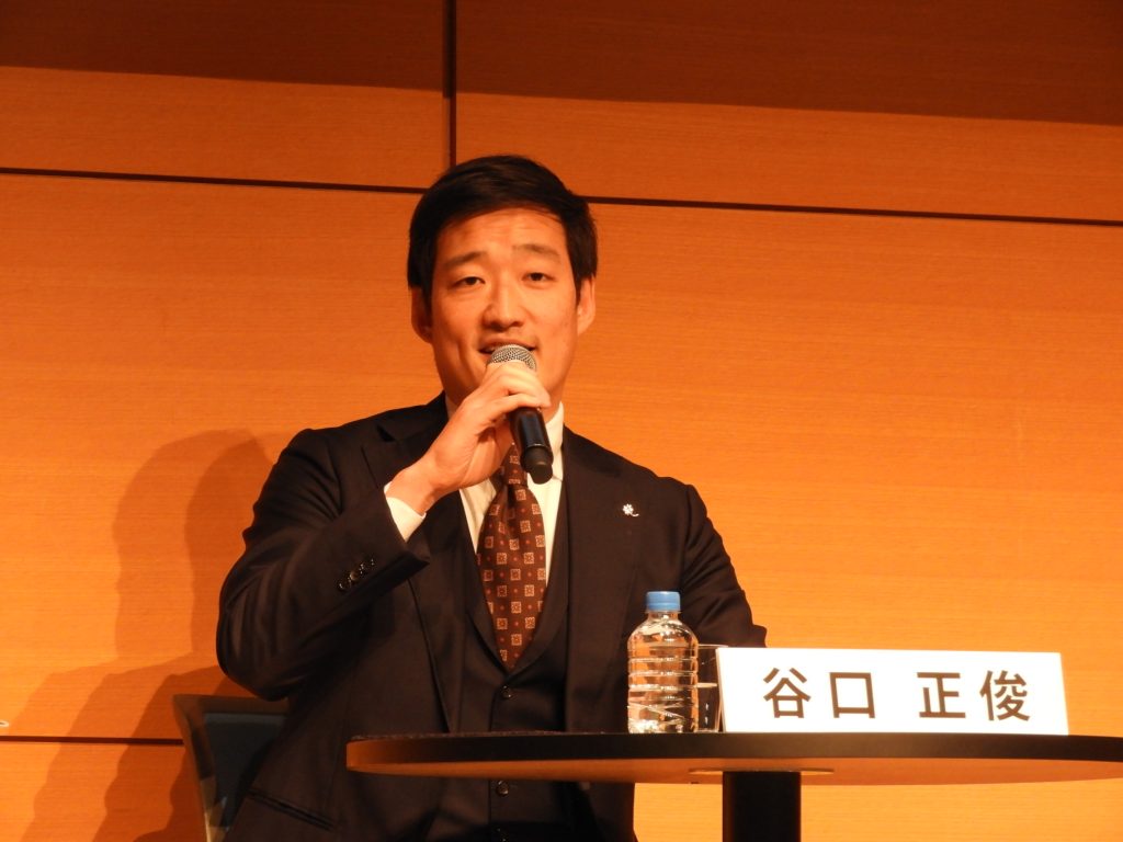 左から2番目が谷口正俊さん、3番目が松下和正さん、一番右が永江耕治さん。基調トーク同様、コーディネーターは上野創氏(左端)。