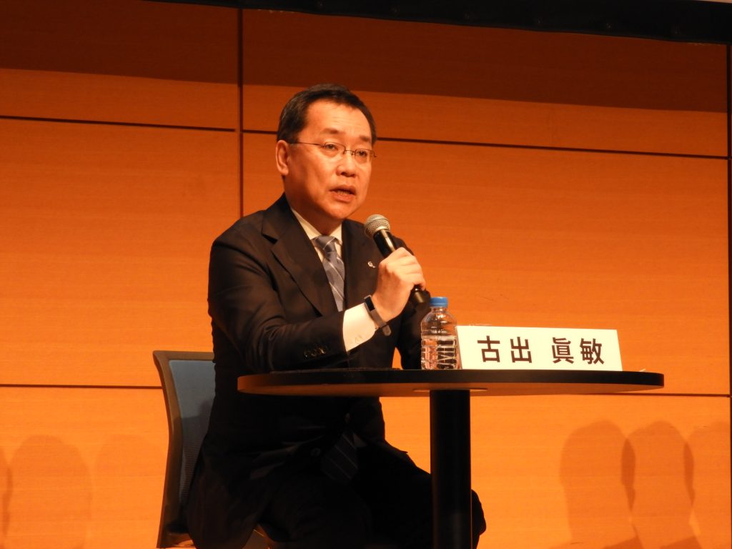 鼎談は、アフラック生命保険の古出眞敏社長の講演から始まった。 アフラックは、日本で事業免許を取得した1974年から、日本初のがん保険を発売している。「がんに苦しむ人々を経済的苦難から救いたい」が創業の想いだ。