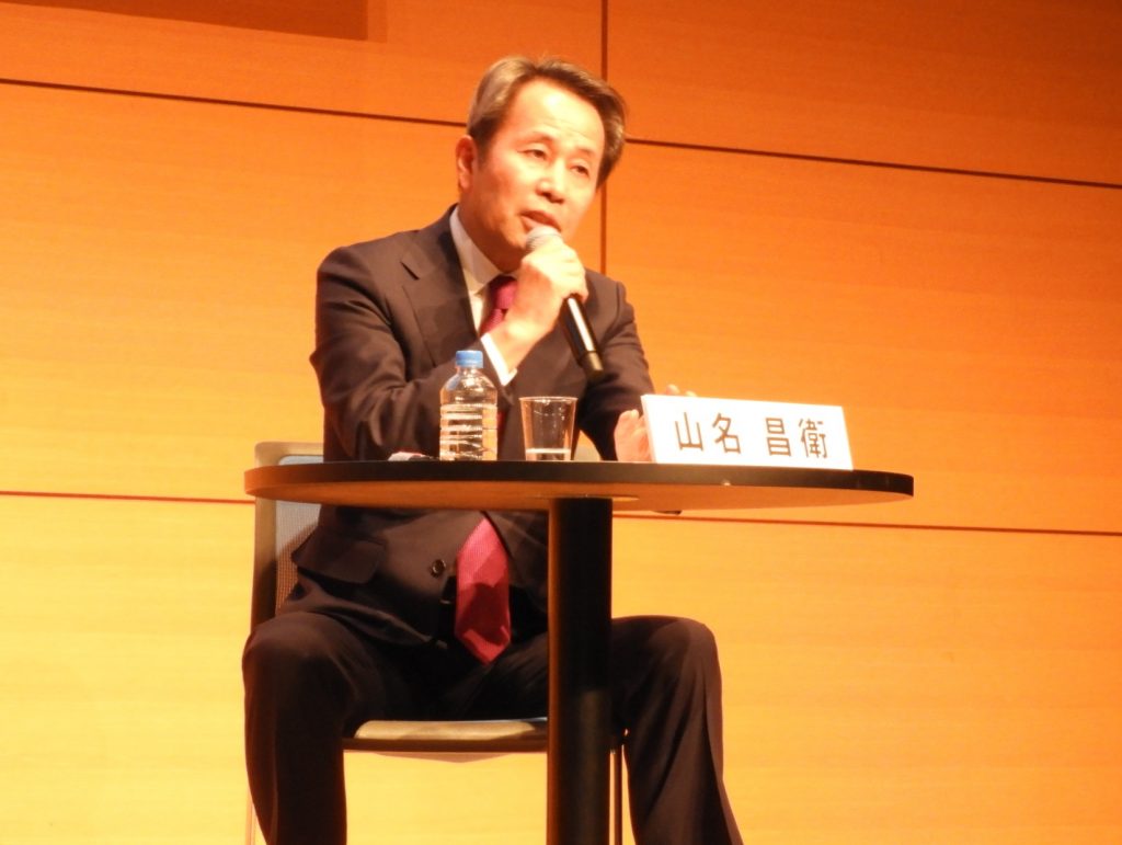 次に講演したコニカミノルタの山名昌衛社長兼CEOの話は、企業の社会的意義に力点が置かれた。 同社は2007年にフォト・カメラ事業を撤退し、現在は情報機器や画像診断装置などを手がけている。