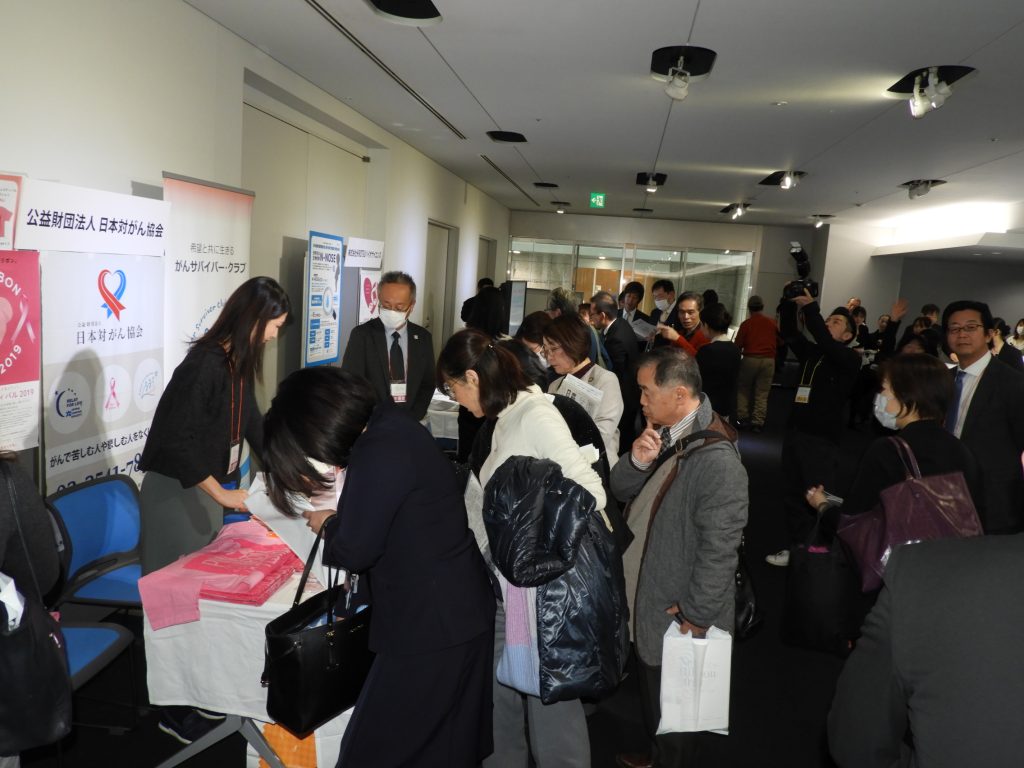 線虫を利用したがん検査の研究開発、販売を行うHIROTSUバイオサイエンス、日本対がん協会などのブースも出て、にぎわった。