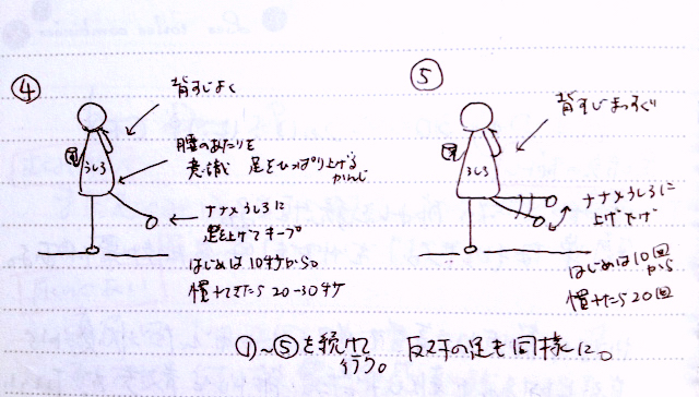 またも日記に描いていたイラスト「歯をみがきながら、足体操」①〜③
