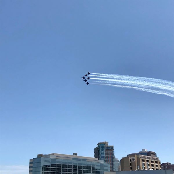 ⑤アメリカ海軍のアクロバット飛行隊「Blue Angels」 5月5日に、人々を応援するために飛行しました。操縦席からの映像も楽しめます。 https://www.facebook.com/USNavyBlueAngels/photos/a.616923575015431/3774296205944803/?type=1&theater