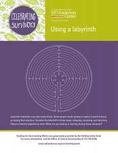 動画とラビリンスの図はこちらです。 https://mediaplayer.mdanderson.org/video-full/FF1CABFF-7BB2-4920-9140-CCE8CDA4F8B1 https://www.mdanderson.org/content/dam/mdanderson/documents/patients-and-family/life-after-cancer/Using-a-labyrinth.pdf