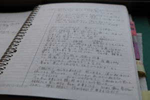 再発転移をした後に買ったノート。家族への感謝、自らへの鼓舞などが書かれている。