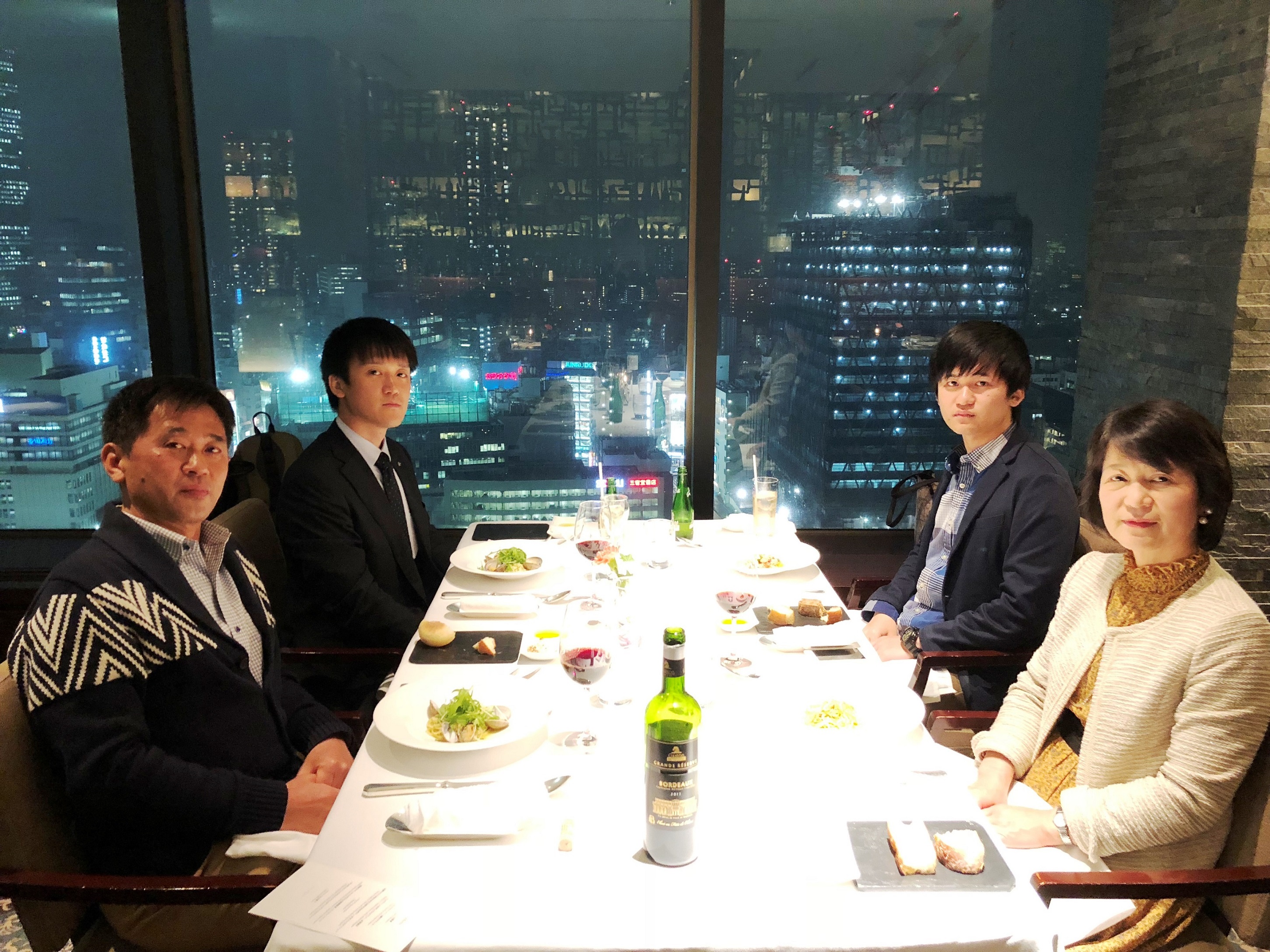 2018年4月、30回目の結婚記念日に家族で食事を楽しんだ。東京・池袋で=大弥さん提供。