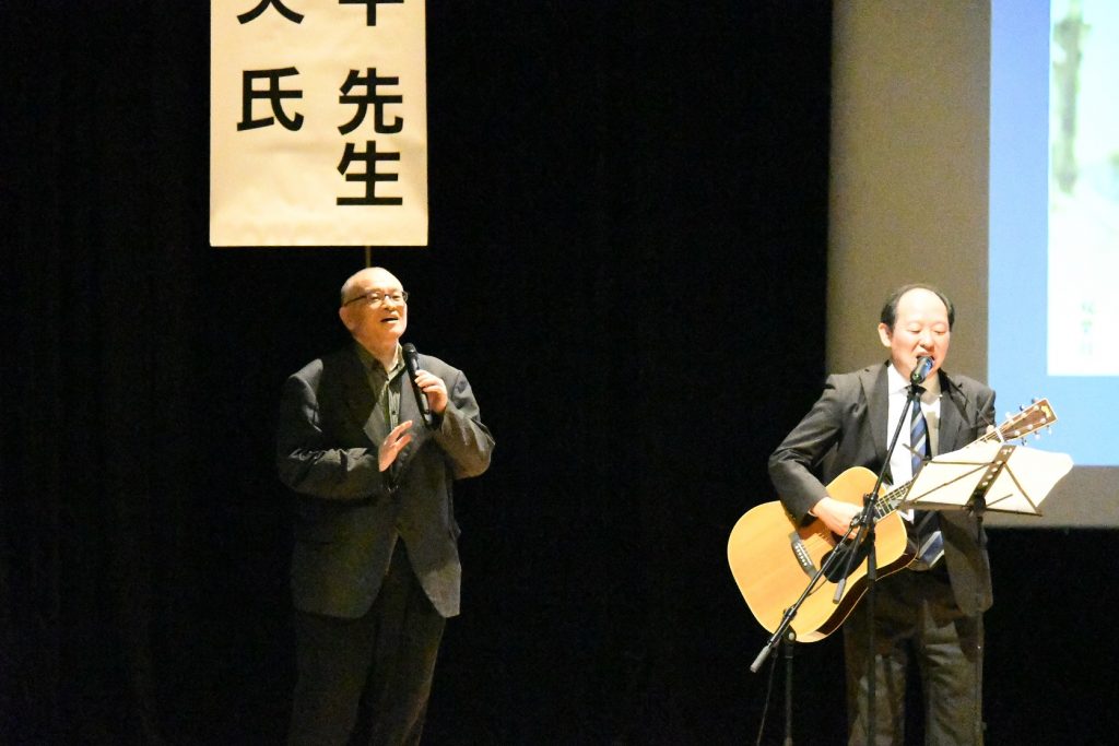 ラスト、ギターを肩にかけた安藤さんが舞台に再び登場し、大橋さんは、会場にも促されて、講演で歌詞を披露した谷村新司の「昴」の替え歌を歌った。安藤さんの控えめな伴奏に、大橋さんのまろやかな歌声が響く。