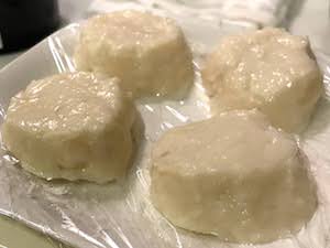 | ラップをふんわりかけ500wの電子レンジで2個ずつ約30秒加熱し、そのまま冷ます。すぐ使わないときはチャック付きの保存袋に入れ空気を抜き、冷凍保存する。 |