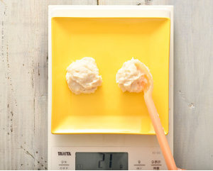 | スケールに皿を乗せ、ゼロ表示にする。1個22gを計量しヘラで形を整える。 | ![]() |