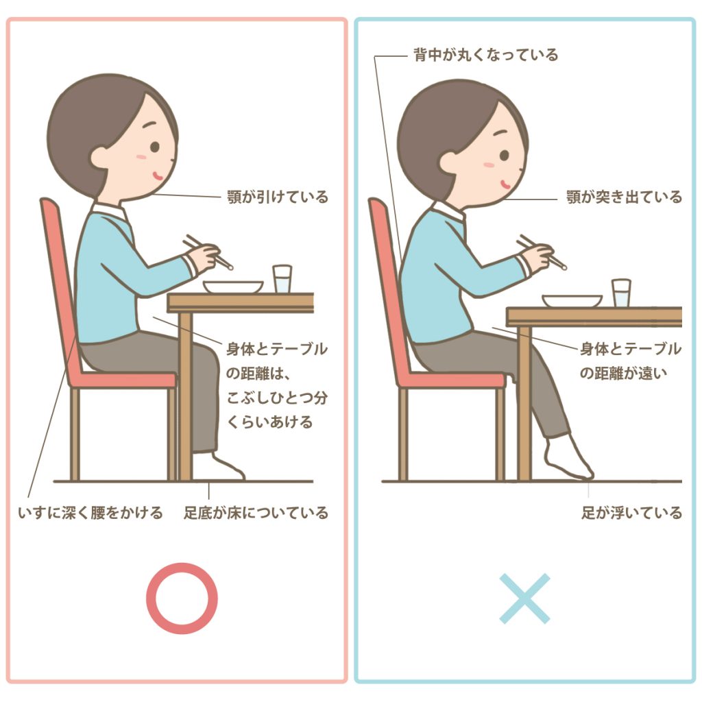 ●椅子に座って食べる場合の姿勢をチェック