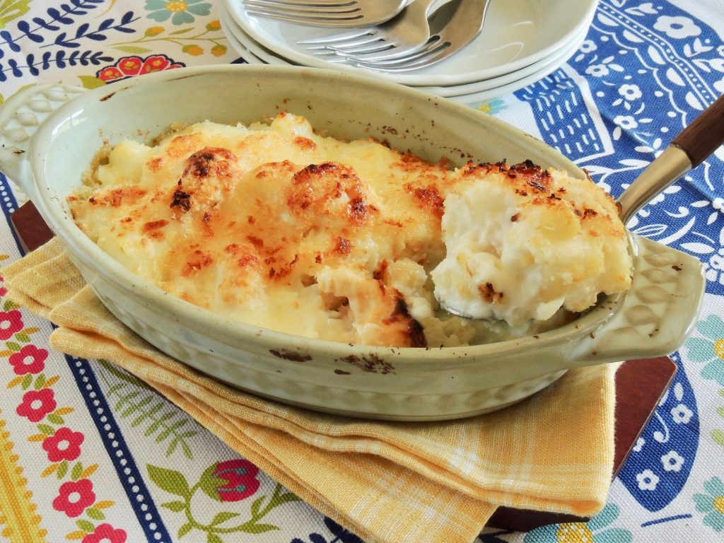 | グラタン皿にバター(分量外)を塗り3を入れる。削ったパルメザンチーズ、パン粉の順にふり、刻んだ無塩バターを散らしてオーブントースターで表面に焼き色が着くまで加熱する。 |