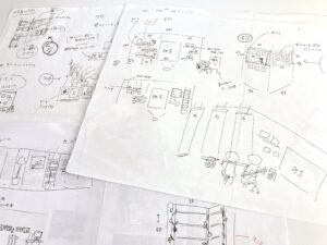 病院内写真展の装飾アイデアスケッチ。
