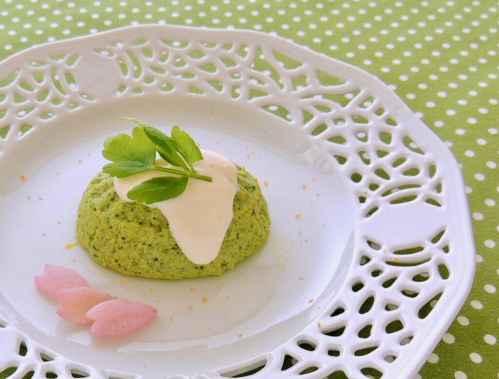 桜の名所巡りも盛り上がりますが、切り花を眺めながらお家で花見の膳を囲むのもいいものです。 今回ご紹介するレシピ「ミツバと鶏のフラン(洋風茶碗蒸し)」は、ミツバの香りがふわっと広がる色よし香りよしの逸品です。 以前にご紹介した第4回「お粥で手鞠ずし」、第6回「菜の花のすり流し」、第9回「ほたてすり身のソテー・フレッシュトマトソース」、第18回「魚とアボカドのタルタル仕立て」などと取り合わせて華やかな花見膳にしてみてはいかがでしょうか。 うららかな春の宴をご家族皆様でお楽しみください。