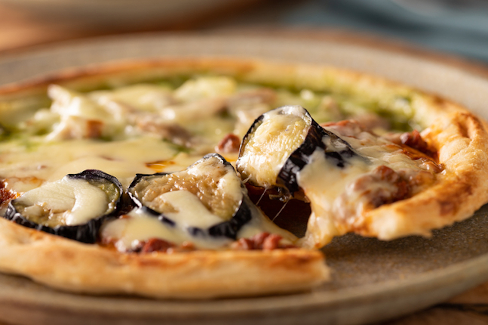私がはじめてイタリアへ行ったのは、30年以上も前になります。行きの飛行機の中が寒くて風邪をひいてしまった私は、ローマのホテルに着くや否や高熱で寝込んでしまいました。 外で夕食を済ませた夫が一抱えもある薄い箱とワインを片手に帰ってきて、テーブルに広げた箱の中身は、見たこともないほど大きなピザでした。 全く食欲のない私は、見ただけでノーサンキューでしたが、「食事したレストランのピザがすっごく美味しかったから、テイクアウトしたんだ。少しでもいいから食べてみなよ」と言う夫の好意を無下にできず、一切れ食べてみました。溶けたチーズとトマトソースの下に、縦にスライスした茄子が見え隠れしています。しっとりとした茄子とピザ生地にとろ〜りチーズとトマトソースが絡んで、もう止まらない美味しさです。本場のピッツァとの感動の出会いでした。