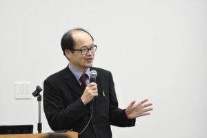 その後「緩和ケアと支持医療のこれまでとこれから」と題し、帝京大学医学部内科学講座腫瘍内科教授の渡邊清高先生が講演しました。医療技術が進み生存率は向上し、併存疾患や合併症、生活の質(QOL)の維持などの課題もある中で「以前は患者が受け身だったかもしれないが、今は治療もケアも選択肢は多くあります。治療を優先する考え方もあれば、生活を重視する考え方もある。どれが正解ではなく、選択肢・価値観が多様な中で、話し合ってこれからのことを考えていく『話し合う医療』がこれからは大切」と述べ、緩和ケアや支持医療に関する情報を必要としている人に届ける重要性を説明しました。