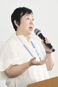 丹藤さんは「日本のがん対策3本の柱のうち、3本目の「共生社会の構築」が圧倒的に難しいと感じる」という点について、「3本目の柱はナラティブからのアプローチがとても大切」と述べました。天野さんは「医療がこうなって欲しい、こんなサポートが欲しいと思っても、患者や家族はなかなか声を上げることができない。それらひとつでも声を上げて実現していくことが、『がんアドボケータ―』と呼ばれる人たちに期待されていること。社会全体でがんを取り巻く問題を考える時に、アドボケーターの方々が活躍すべきことはたくさんあると思います」と述べ、「是非たすきをつないでほしい」と参加者に語り掛けました。