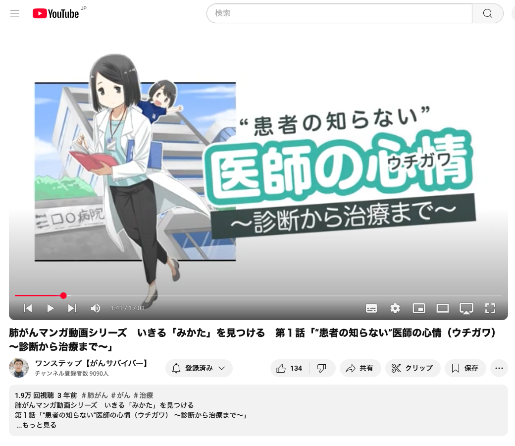 NPO法人 肺がん患者の会「ワンステップ」のマンガ動画 (YouTube)