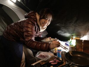 おまけに炭火で野菜や肉を焼こうとしたもののなぜか失敗。これまた「とりあえず」で持参したフライパンとガスコンロで美味しくいただくことができたという(余談ですが焚き火での焼き芋も失敗)。
