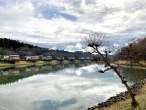 湖のほとりにならぶトレーラーハウス