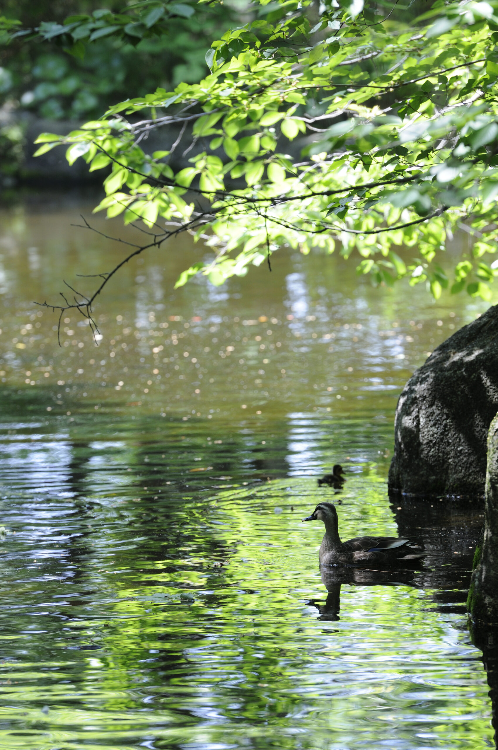 夏も朝は涼しく、濃い緑の葉をつけた木々の中を歩いたり、池で亀やコイやカモがゆるゆると泳ぐのを眺めたり。ときには本とパンとコーヒーを持って行き、木の下で「ひとりモーニング」をすることも(「ウチの食卓」と呼んでいた)。