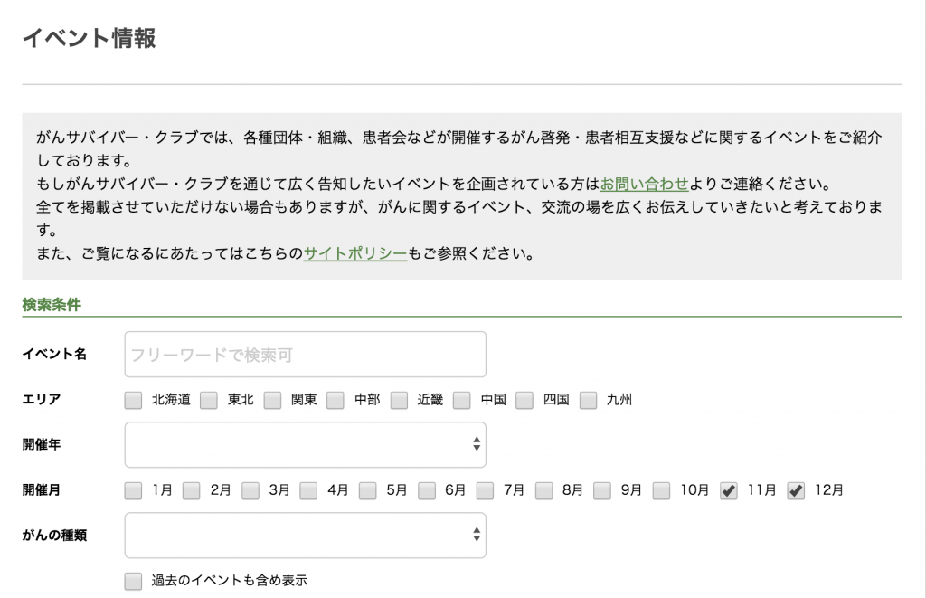もし、ご存知の団体、主催・運営されている団体で登録されてない場合にはぜひ『お問い合わせ・患者会・イベント情報フォーム』よりご連絡いただけましたら幸いです。