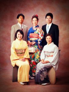 友貴さんの成人式の記念写真。右奥は健太さん、右手前は哲也さんの母の轟ミチ子さん。このころ、最初のバリウム検査が引っかかった。(轟浩美さん提供)