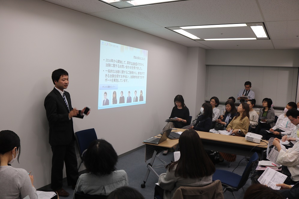 講師は、がん情報サイト「オンコロ」(株式会社クリニカル・トライアルが運営)責任者の可知健太さん、治験問い合わせ窓口責任者の濱崎晋輔さんの2人。オンコロは、きめ細かくわかりやすい臨床試験情報の提供や電話相談に定評があります。2015年5月にスタートしました。