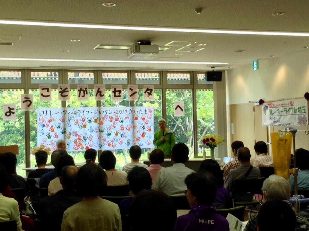 そこで今日は、自宅からタクシーで埼玉県立がんセンター(埼玉県伊奈町)へ向かいました。センター手前のコンビニで、日本対がん協会埼玉県支部(公益財団法人「埼玉県健康づくり事業団」)の方たち、リレー・フォー・ライフ・ジャパン・さいたまの実行委員でサバイバーの方、日本対がん協会の職員と合流して、5人で800メートルほど歩きました。