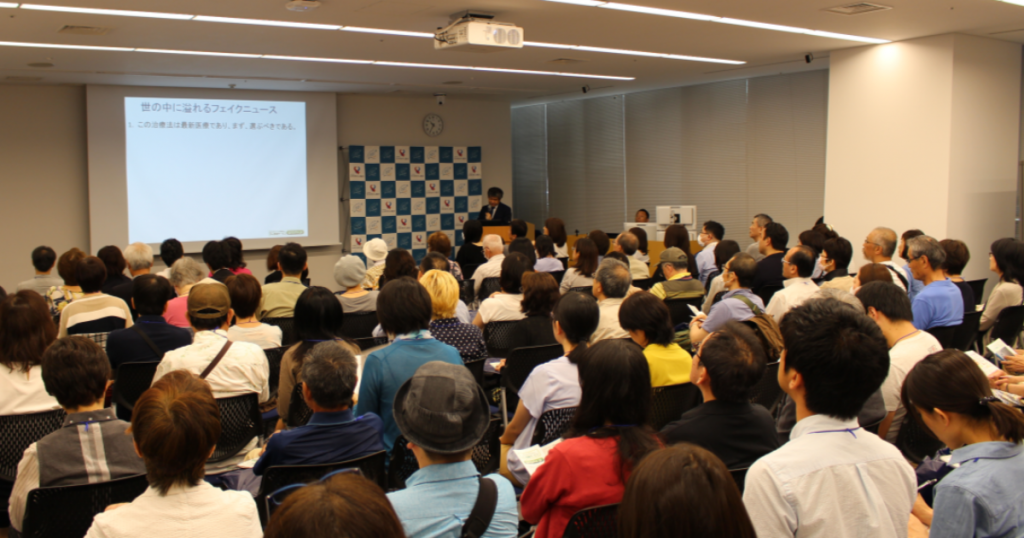 がん治療において、情報収集は欠かせない。しかし、情報は、諸刃の剣でもある。情報を武器にするためのヒントに満ちた講演に、参加者たちは熱心に聴き入っていた。