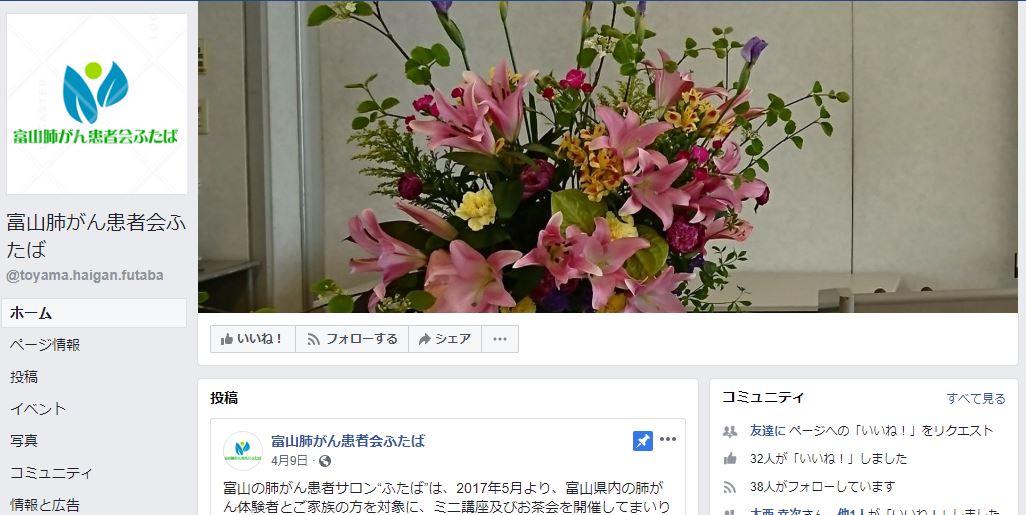 ホームページ 名称肺がん患者サロン“ふたば” 活動地域富山県