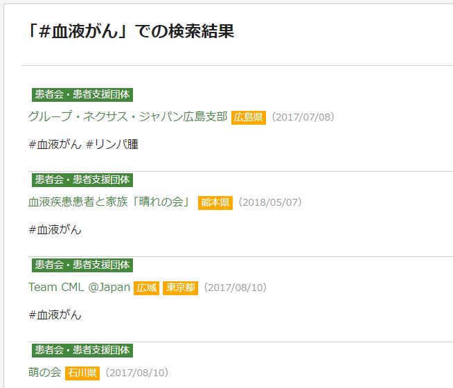 【検索キーワード 「血液がん」 で患者会をまとめて表示しましょう】
