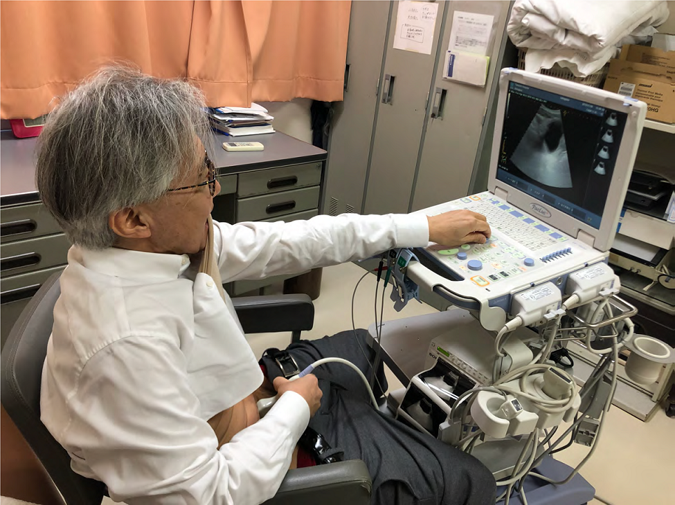がんは自分で見つけました。昨年12月9日、先輩の病院で当直のお手伝いをしていたとき、空いている時間に超音波エコーで自分の肝臓を診たのです。    というのも、2年ほど前から肝臓に、肝硬変などの原因になりかねない脂肪肝があったのです。この日はふと気になって、膀胱も映してみました。すると、左の尿管と膀胱のつなぎ目である尿管口の近くに、白い影が見えました。  実は2017年6月に、超音波エコーで膀胱を見た際に、内壁に小さな影を見つけていました。しかし、忙しくて放っておいたのでした。今回の白い影は、それが大きくなったものです。膀胱を映してみたのは、心のどこかで影のことが気になっていたからかもしれません。