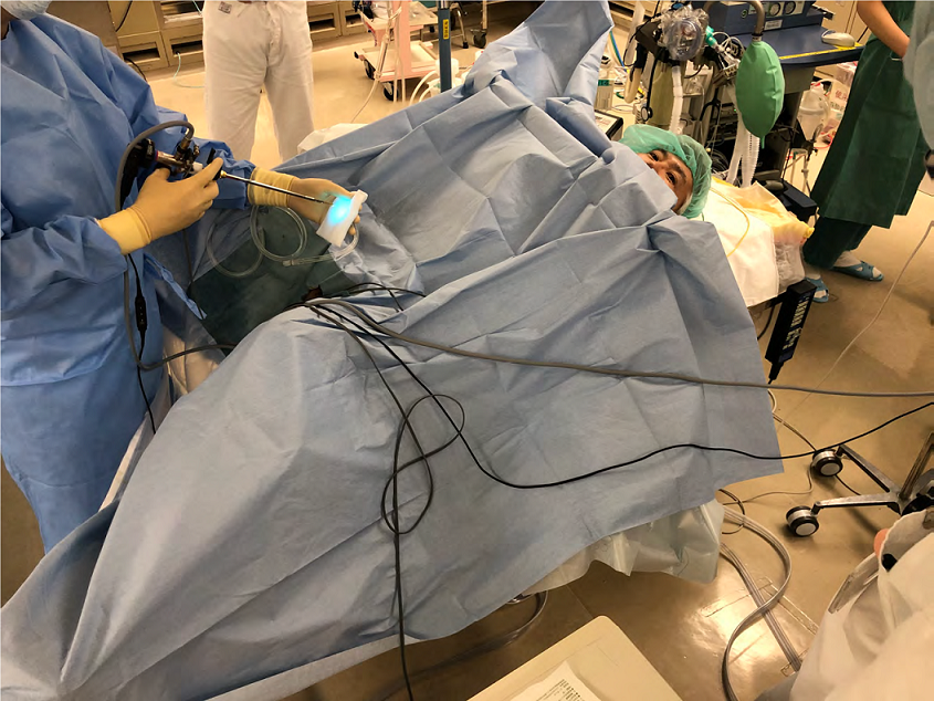 内視鏡手術を受ける中川先生。意識ははっきりしている=中川先生提供