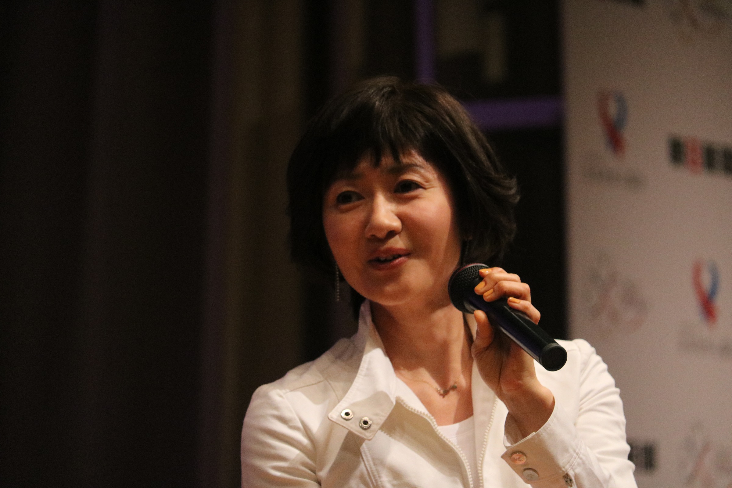 向井亜紀さん。明るく真摯に、対談相手の話を引き出していた
