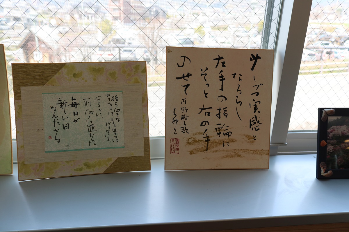 憩いのひろばの窓際にはこんな色紙なども並ぶ