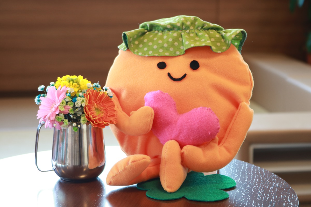 マスコットのだんだんちゃん。好物はプリン、趣味は旅行