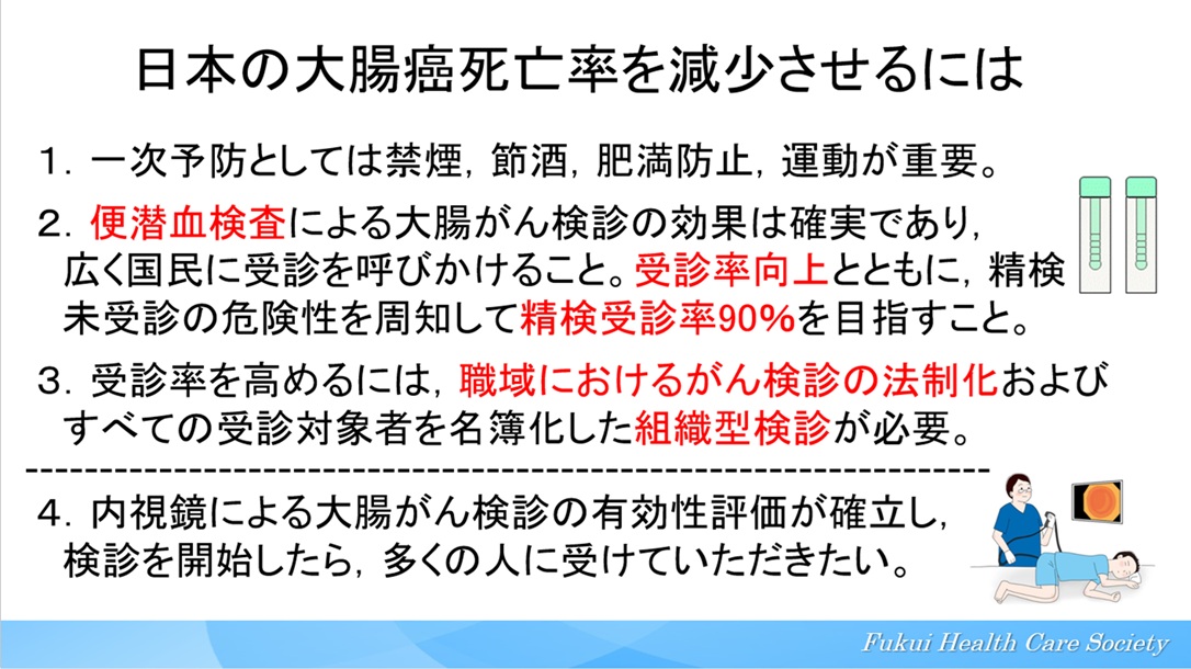 講演資料(一部):日本の大腸癌死亡率を諸外国並みに減少させるには、何が必要か?